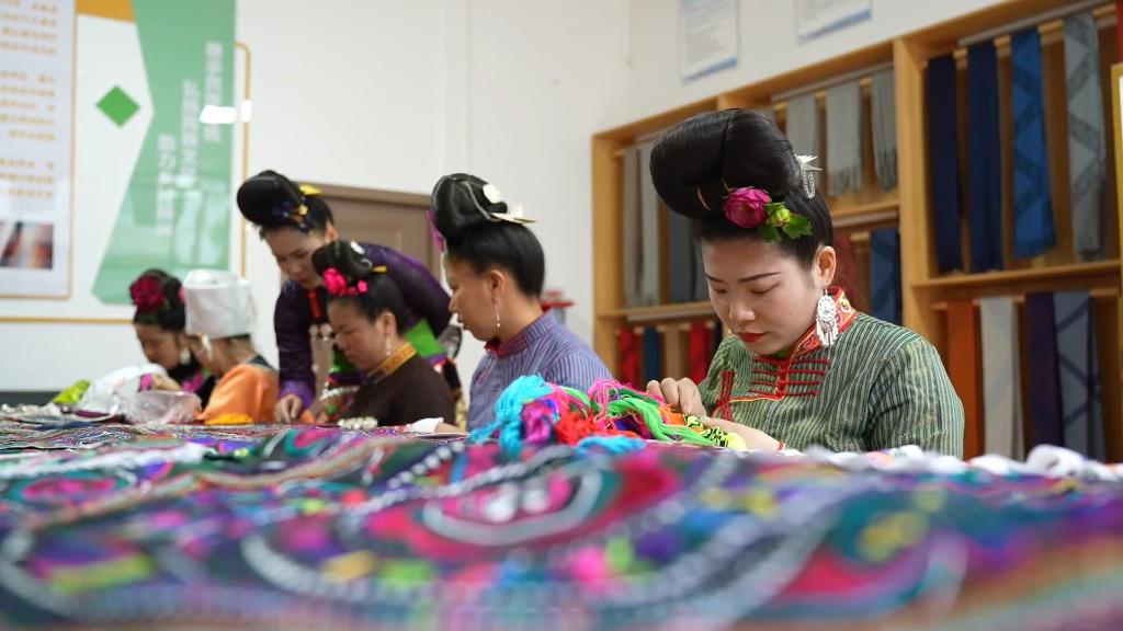 為了更好地保留與傳承苗族織錦技藝。2012年,甘小芝創辦了織錦刺繡企業,不僅致力于傳承苗族織錦技藝,還積極培養傳承人。企業所生產的苗族手工藝品讓越來越多的繡娘能夠在家門口就業。