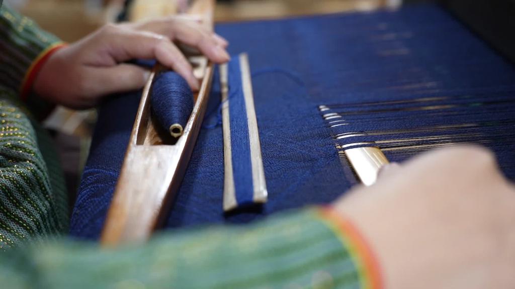 從小在雷山縣苗族村寨長大的甘小芝,8歲開始學習織錦,10歲就能自己完成種棉、紡線、排線、上機、刺繡等整套織錦流程。如今的她已是國家級非遺項目苗族織錦技藝的省級代表性傳承人。