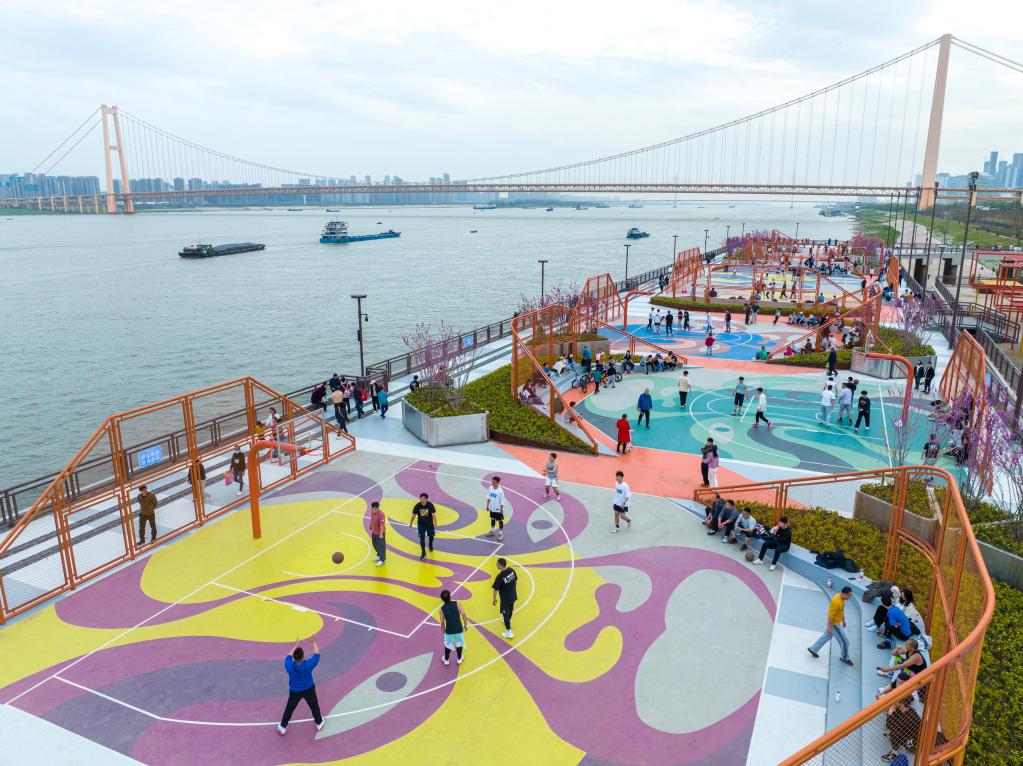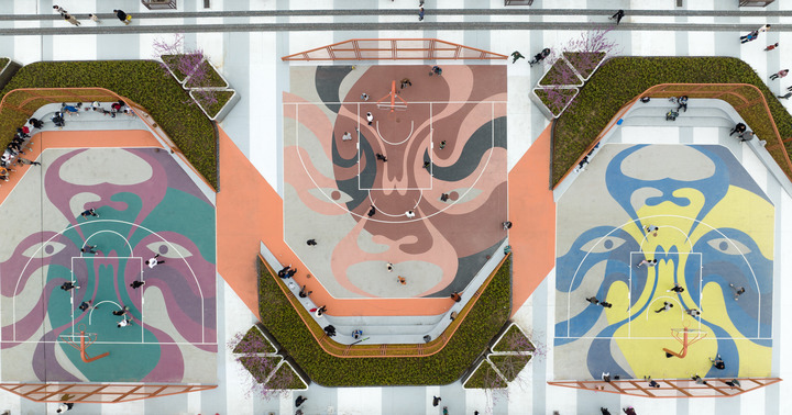 在廢棄碼頭改造成的炫酷國風球場打籃球