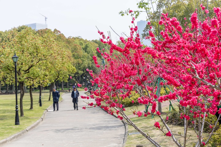 為了更好地傳承革命精神,延續文化傳統,讓桃花成為龍華地區標志性景觀,上海市徐匯區綠化市容管理局特地在陵園周邊打造“桃花大道”,栽種了百余株不同品種的桃花。天氣漸暖,不少桃花已經提前綻放,吸引了不少路人拍照留念。