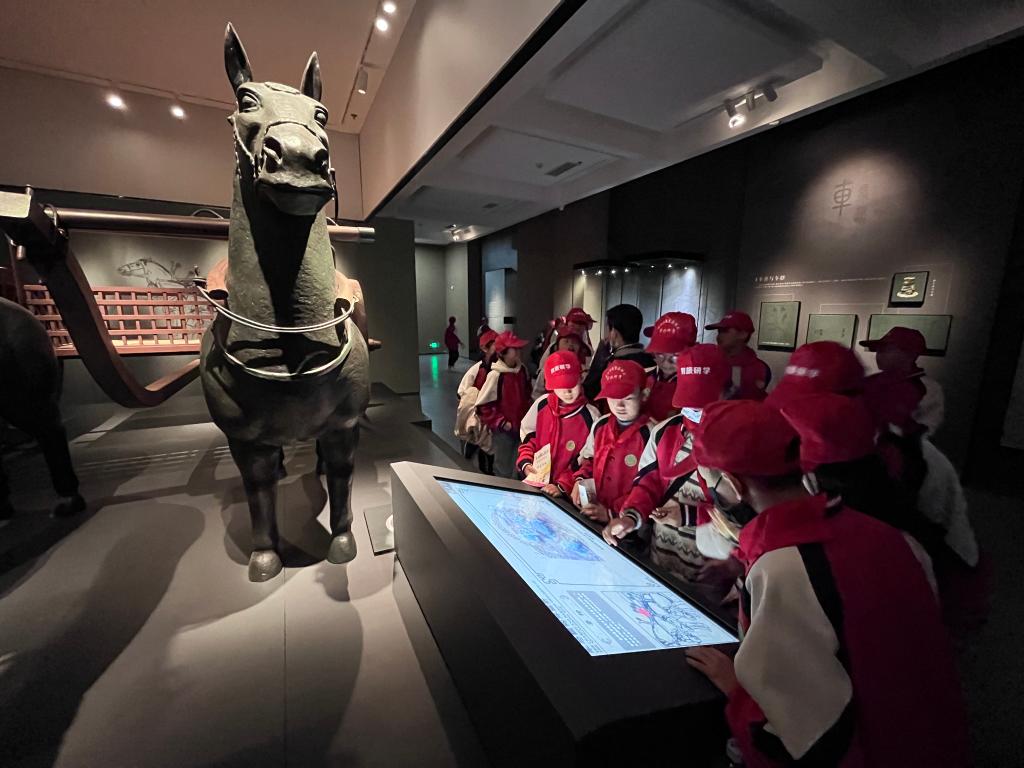 小學生們在楚王車馬陣景區參與研學活動。(周舟 攝)