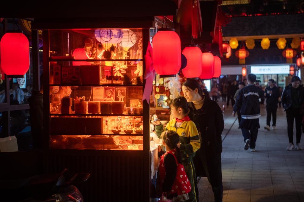 “《三國演義》共120回,其中72回與荊州有關,我們通過強化三國文化印跡打造出一個集荊楚美食、江漢平原水鄉特產、文創商品于一體的消費空間,讓這里成為荊州人的‘待客之所’?!焙鼻G旅商業管理有限公司副總經理肖雄說,自2022年9月開街以來,街區人流量屢創新高,今年元宵節單日客流已突破5萬人次。