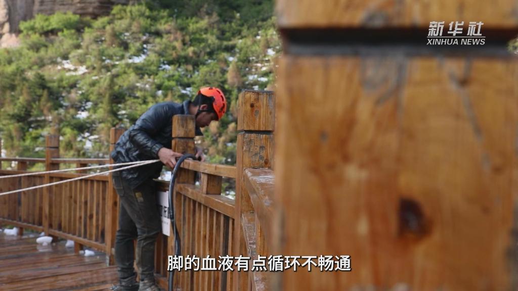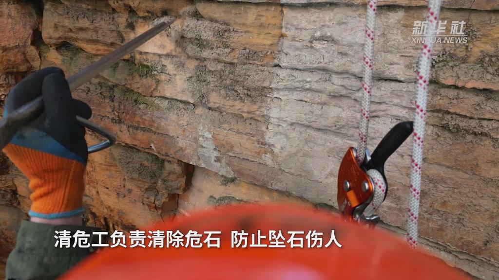 在山西省黎城縣黃崖洞文化旅游區,有一對被稱為“崖壁清危工”的師徒檔,每年“五一”等節假日來臨前,他們都要對山體進行檢查、清理,在數百米高的懸崖峭壁間“行走”,揮動手中的鋼釬,排除風化松動的危石,防止墜石傷人,守護景區游客的安全。