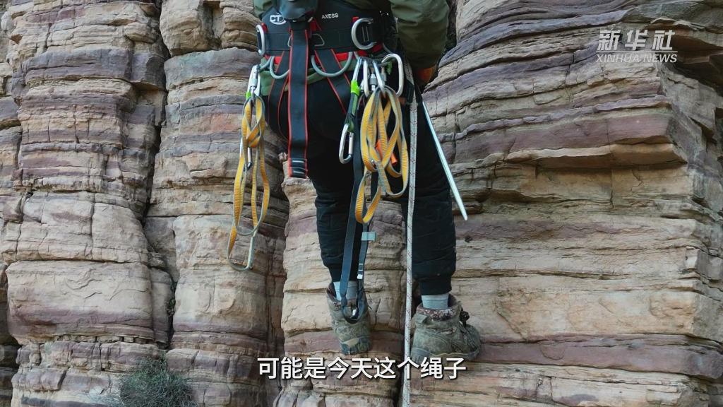安全保障是兩人最關注的事,每次下吊前,他們總是要反復確認安全帶和安全繩是否系緊,降速器等裝備是否正常。一人下吊作業,另一人在山頂看護輔助,兩人通過對講機進行交流,默契配合。