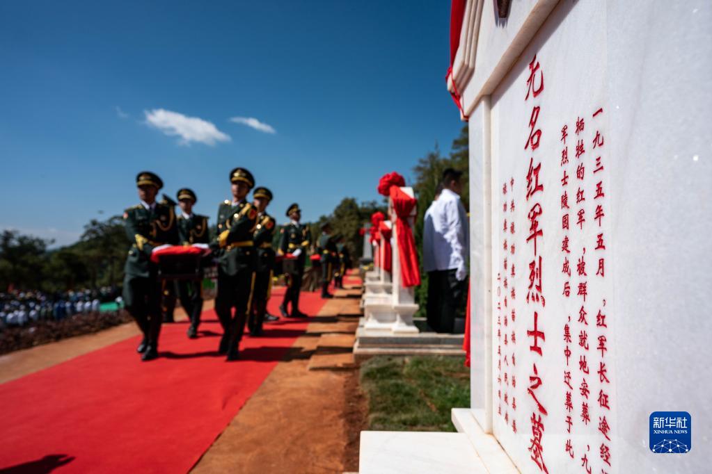 5月6日拍攝的云南省祿勸彝族苗族自治縣九龍紅軍烈士洞紅軍烈士遺骸安葬儀式現場。新華社記者 胡超 攝