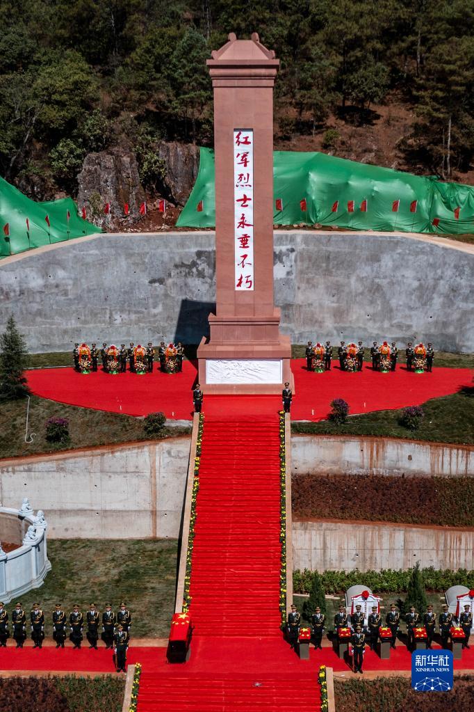 5月6日拍攝的云南省祿勸彝族苗族自治縣九龍紅軍烈士洞紅軍烈士遺骸安葬儀式現場(無人機照片)。新華社記者 胡超 攝