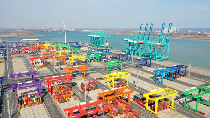 天津港全物聯網集裝箱碼頭全景。新華社記者 趙子碩 攝