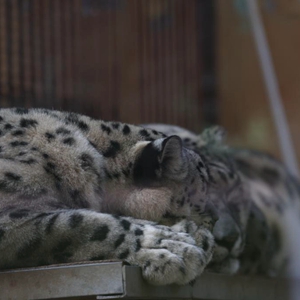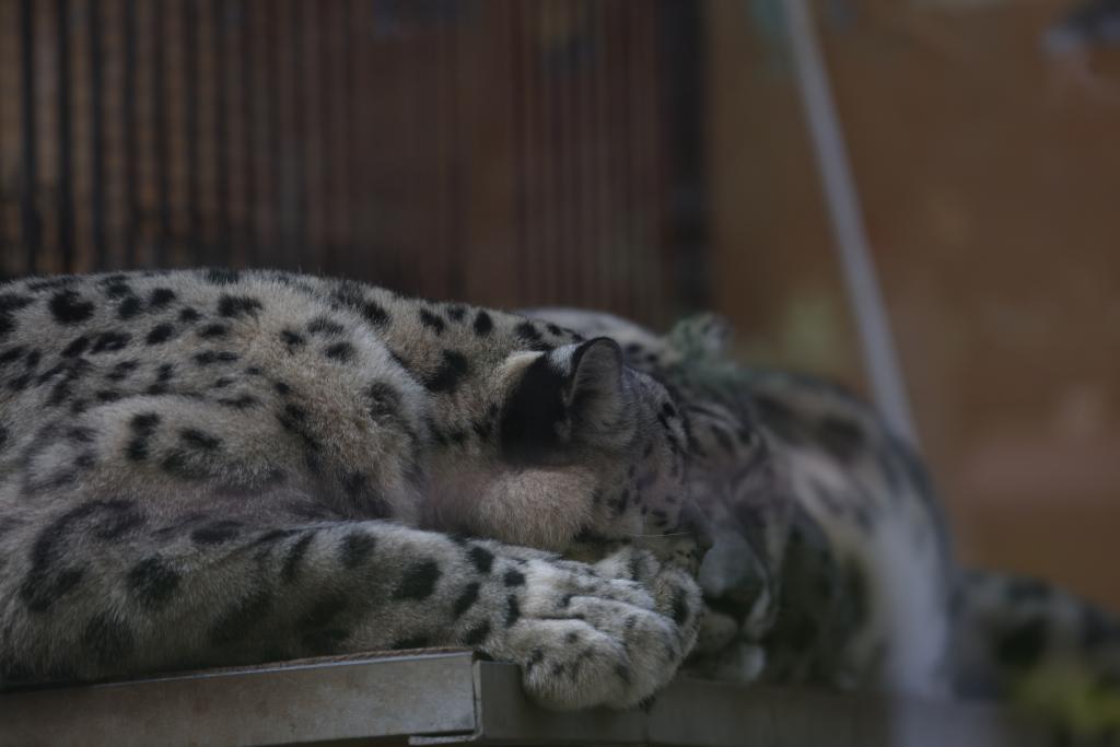 有一段時間,飼養員將一只老年雄性雪豹“大虎”給“凌霜”做鄰居,并在夜里觀察到它們隔著鐵籠相互示好拱脖子。之后,便將兩只雪豹進行合籠。