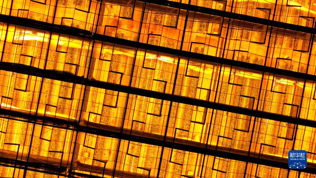 5月25日拍攝的貴州省開陽縣南江蔬菜良種繁育中心智能育苗大棚夜間補光場景(無人機照片)。新華社發(袁福洪攝)