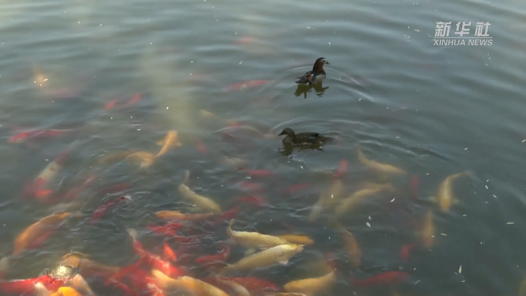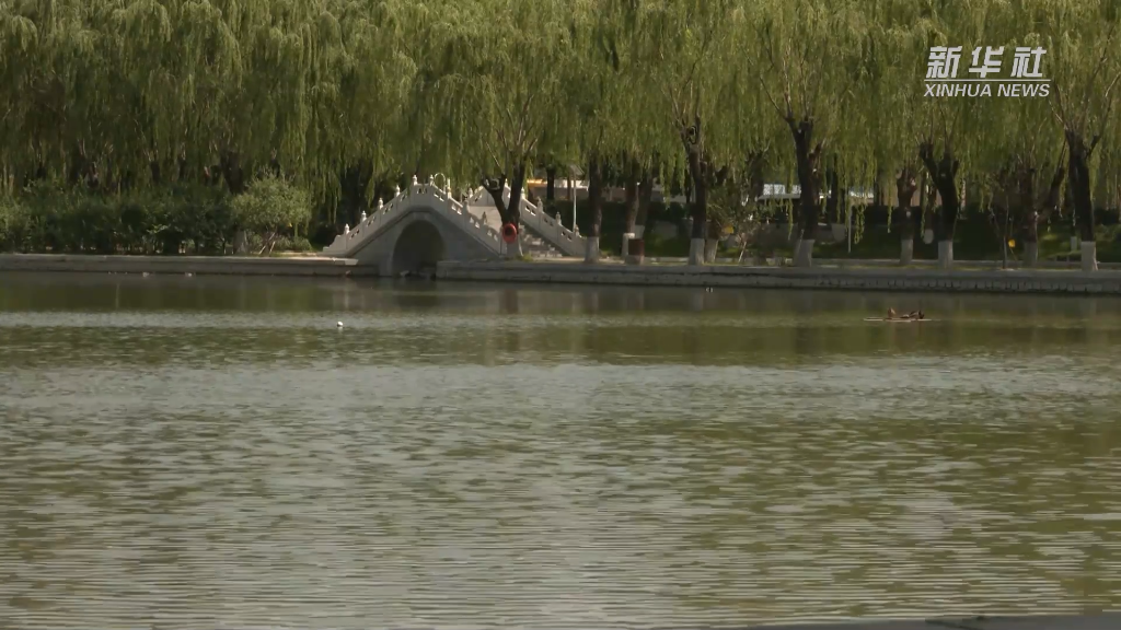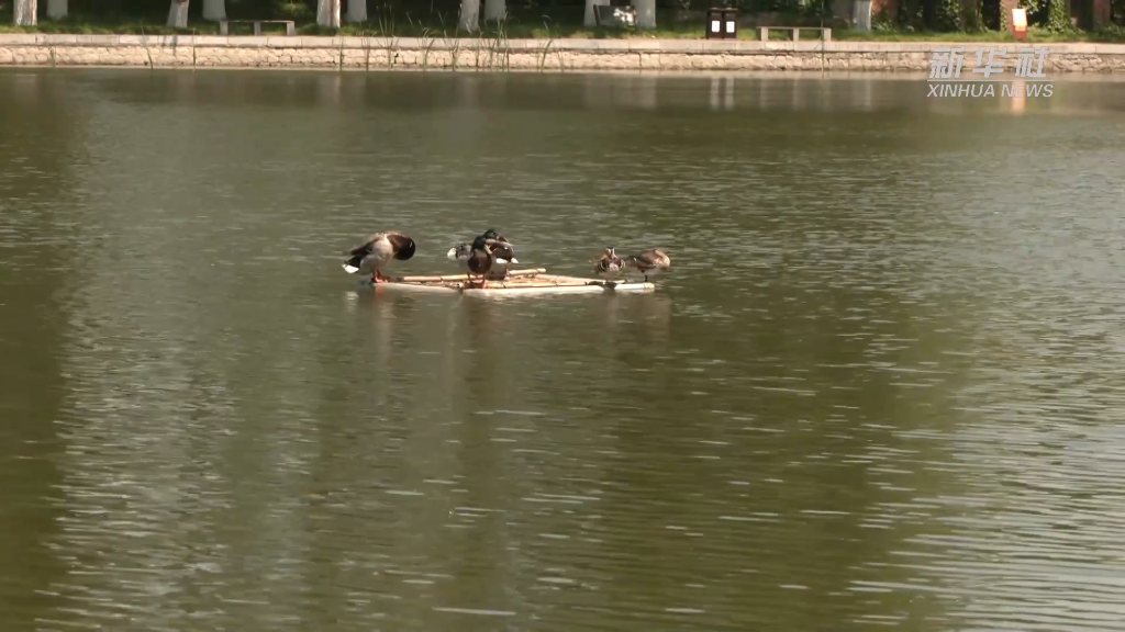 進入夏季以來,北京東三環附近農展館后湖上,燕語鳩鳴、天鵝暢游,與回廊亭臺、碧瓦黃檐建筑群交相輝映,勾勒出一幅美麗的生態畫卷。