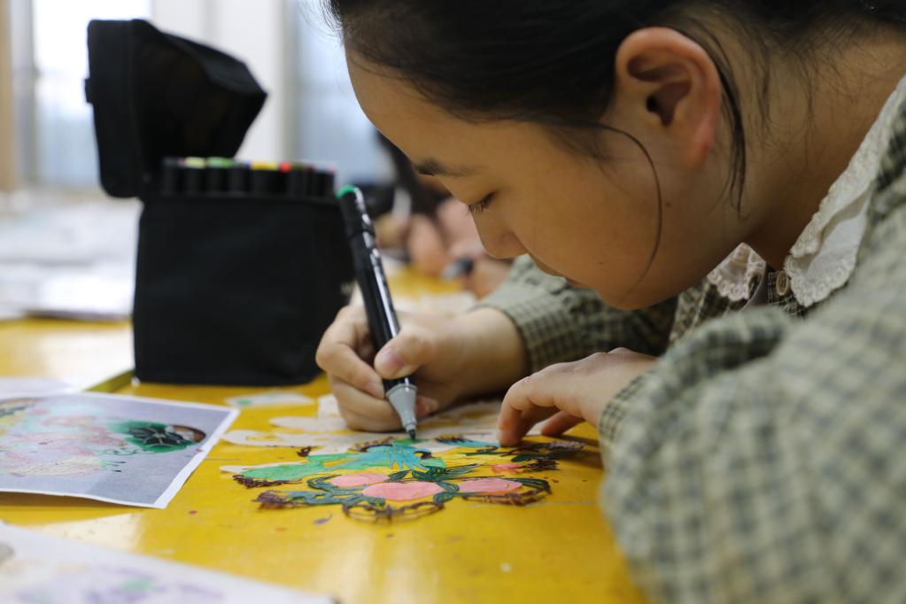 隴東學院的大學生正在練習皮影雕刻。新華社記者 張睿 攝