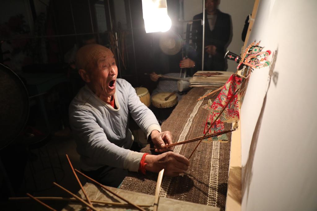 敬廷佑正在進行皮影表演。新華社記者 張睿 攝