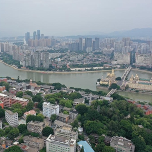 6月13日,福州煙臺山、愛情島、中洲島及閩江北岸的青年廣場等組成的閩江之心。新華社記者林善傳 攝