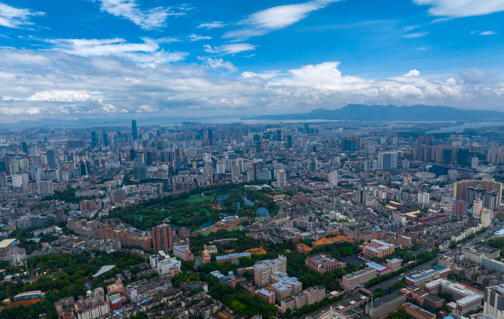 空中俯瞰雨后的昆明城區(無人機照片,6月15日攝)。新華社記者江文耀?攝