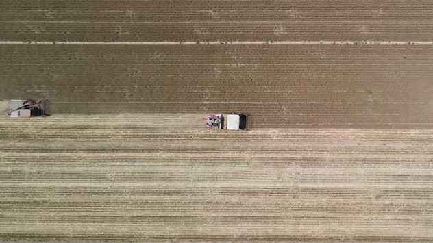 從播到收,全程機械化,還有農業聯合社提供服務,旱能澆,澇能排,1500畝地用噴灌一周就能澆完,成本20元左右,比傳統澆灌既節省人力又降低成本。