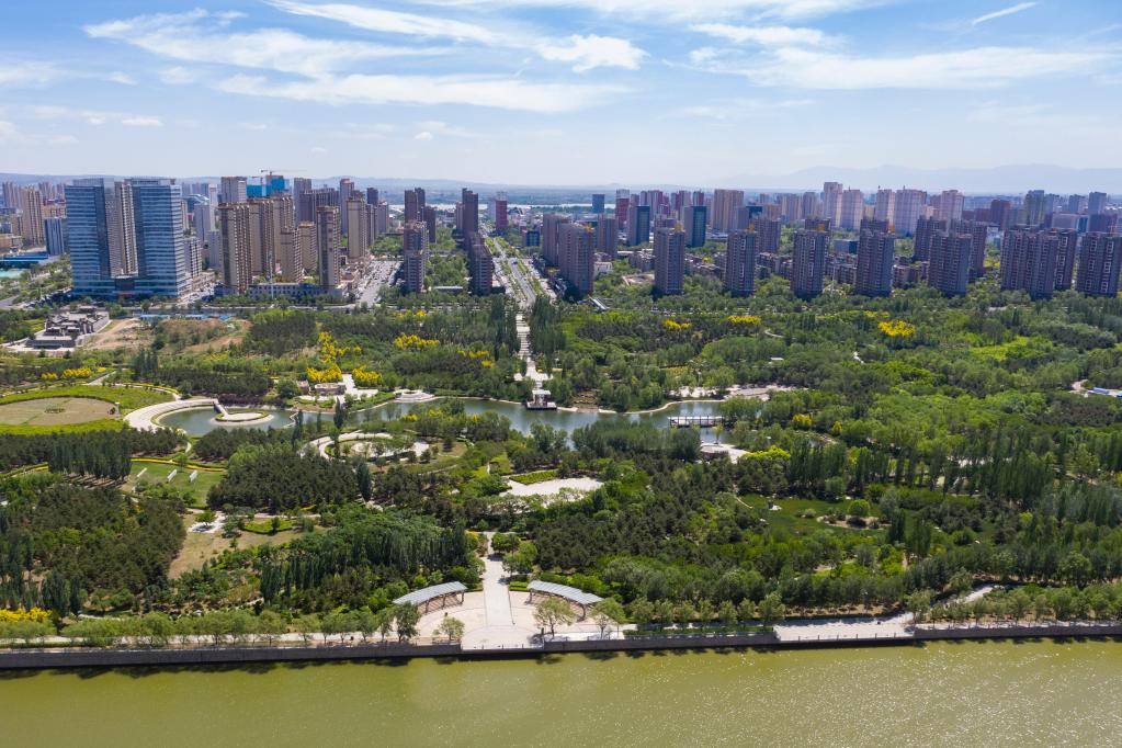 大同市平城區的御河生態林一角。新華社記者楊晨光 攝