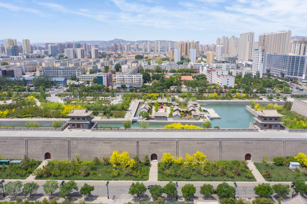 大同古城和城市街景交相輝映。新華社記者楊晨光 攝