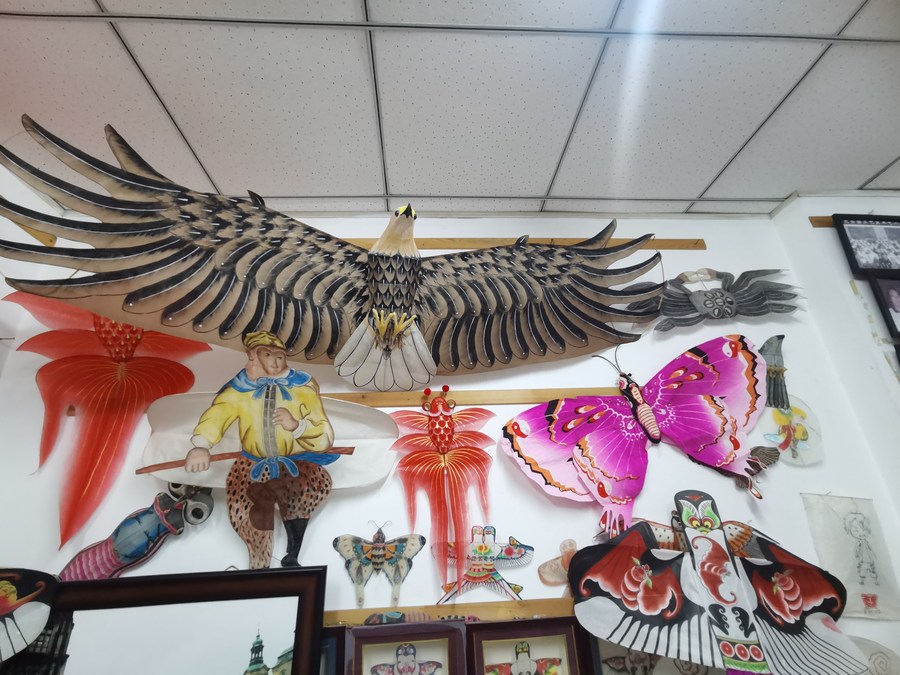 “風箏魏”工作室內展出的部分精美風箏作品。新華社記者 劉惟真 攝