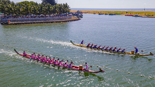 “飾素紙以成鳥,像飛鳶之戾空”。古代人把風箏叫做“紙鳶”,放飛紙鳶也是端午習俗之一。端午時節的天津海河之畔,晴空中數只風箏身姿靈動。人們逐風引線,如同放飛美好的希冀與祝愿。
