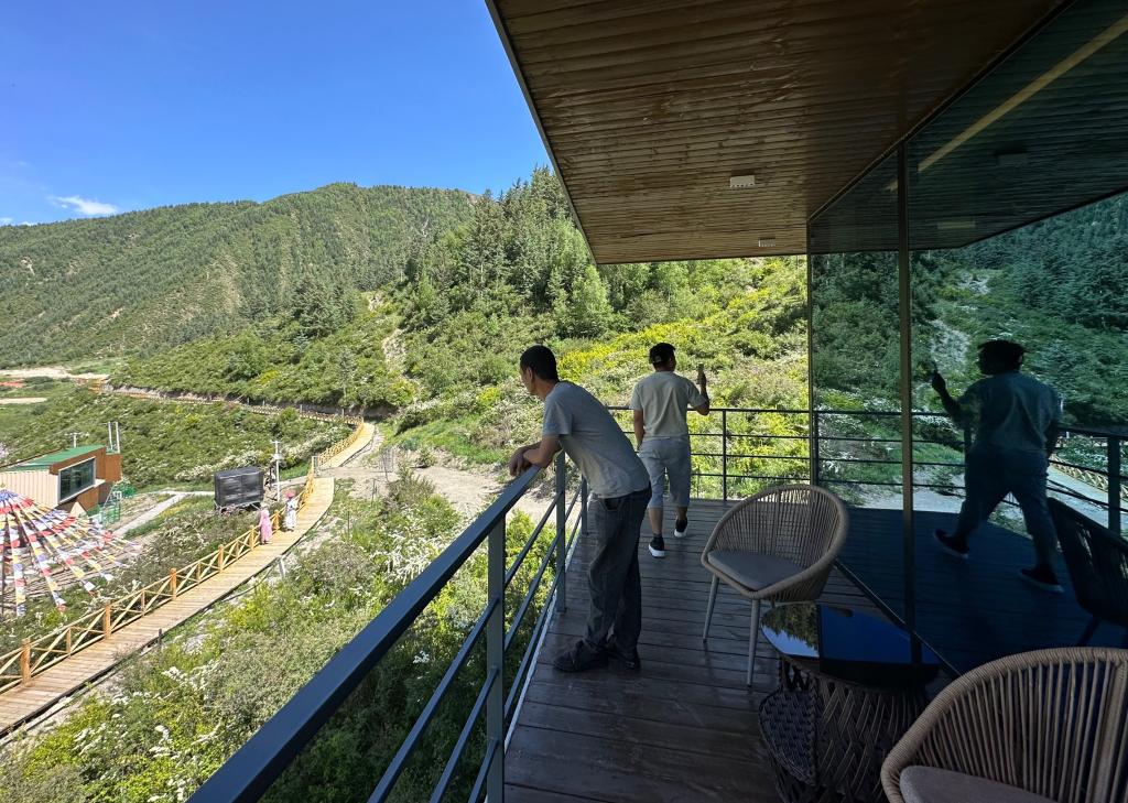 午后,在扎毛村“芊桑別院”景區,來自湖北、甘肅等地的游客站在高處遠眺高原美景,贊不絕口。