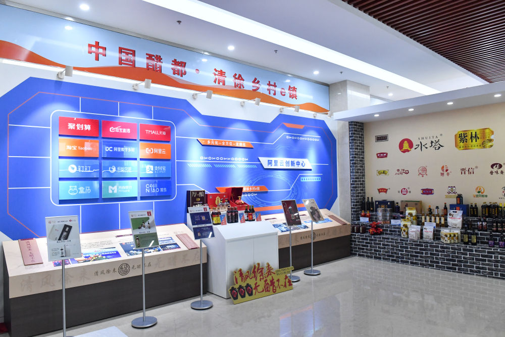 這是“清徐鄉村e鎮”的展示臺(7月11日攝)。新華社記者 柴婷 攝