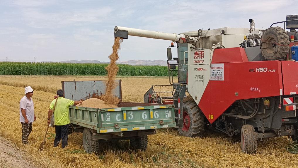 烏拉特中旗烏加河鎮農戶正在收獲小麥。新華社記者 李云平 攝