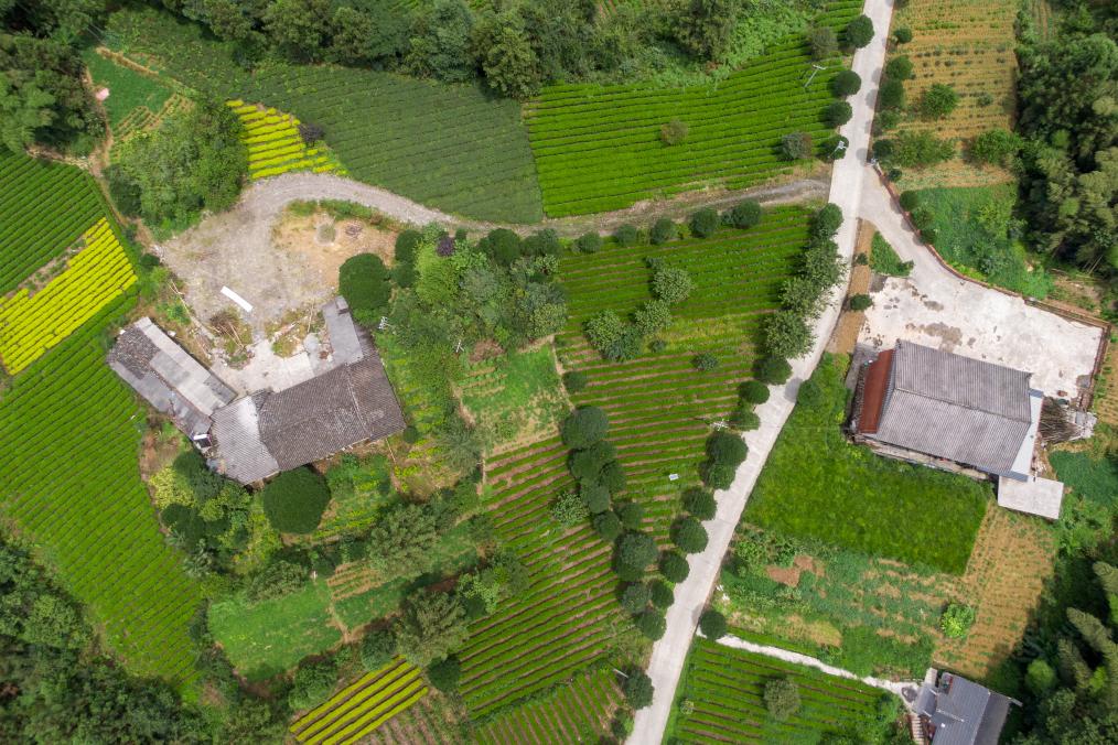 2023年7月28日,蘭田村茶園與民居相映的美景。新華社記者杜子璇 攝