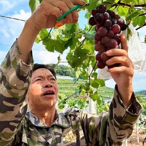 在湖南省冷水江市鐸山鎮眉山村,67歲的謝桂民頂著烈日穿梭在葡萄種植基地,他一邊摘下紫里透紅的葡萄,一邊笑呵呵地盤算著今年的收成:“150畝葡萄,少說也能有200多萬元收入?!?/p>