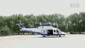 8日,為實時監測上游洪水,減少洪水過境對當地居民造成人員傷亡與財產損失,天津市公安局調派警用直升機來到天津防洪重點地區上空。