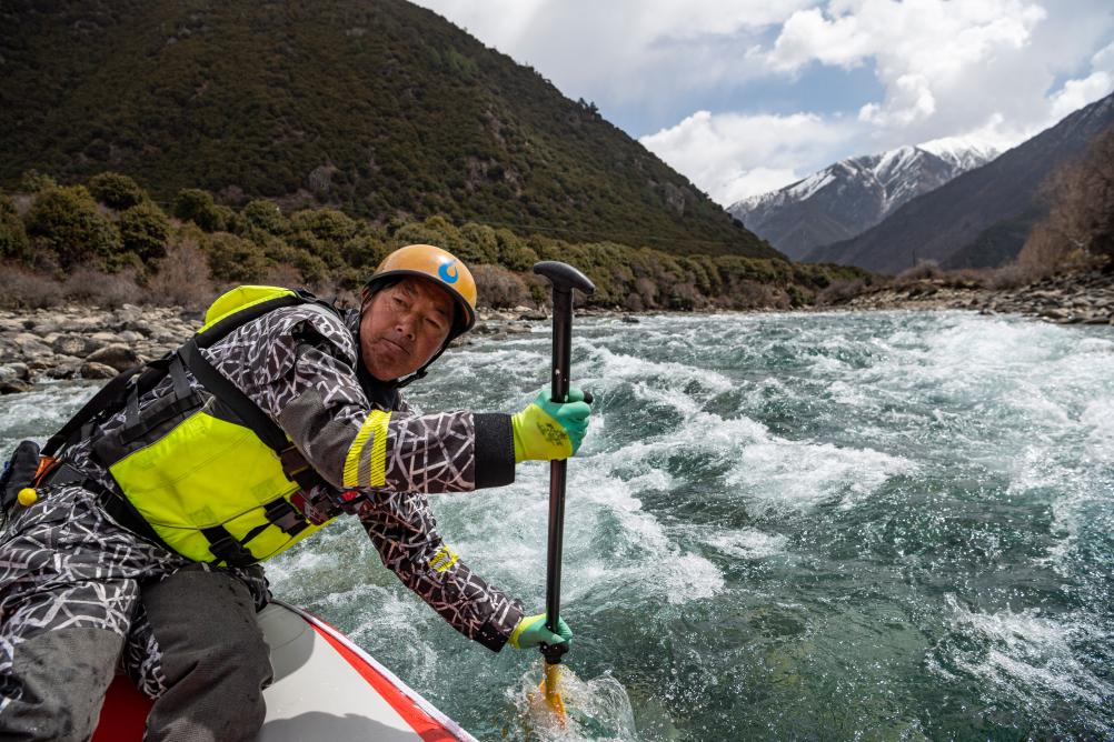扎史品初正在巴河上漂流(4月14日攝)。新華社記者 孫非 攝
