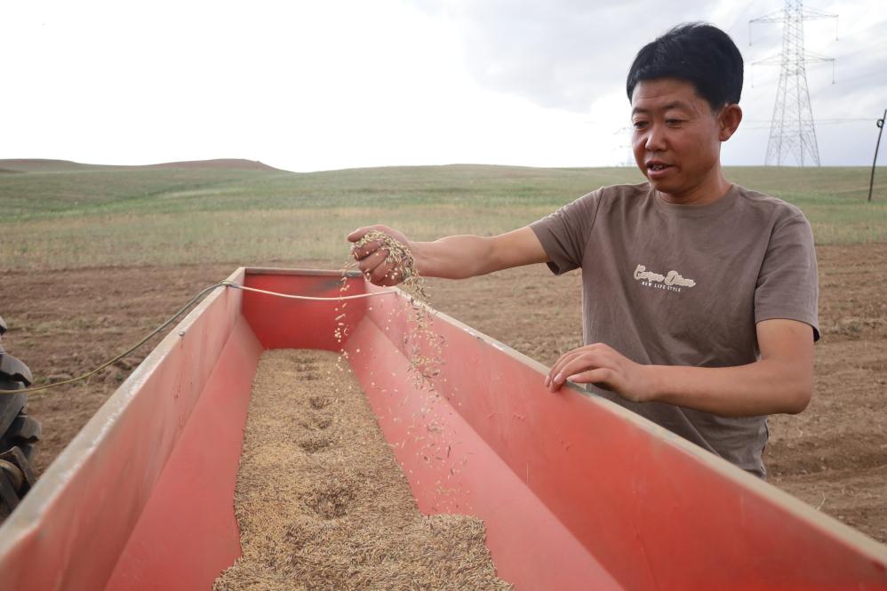 8月21日,在蘭州市永登縣坪城鄉歇地溝村,當地合作社、村民補種燕麥、蕎麥等小雜糧。新華社記者 馬希平 攝
