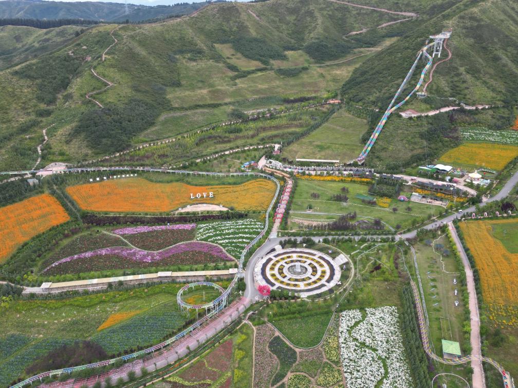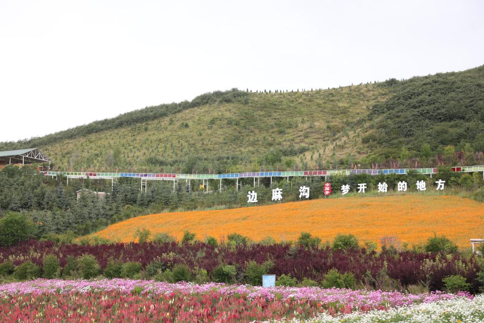 整合扶貧項目,流轉村民土地,引進魯冰花、勛章菊、鳶尾花等高原適生花卉,種植青海云杉、海棠樹等景觀樹種,搭設高空滑索、水滑道等游客體驗設施。一個占地800畝的花海景區逐步成型。每年從6月到10月中旬,每月不同花卉綻放,不同主題色彩,邊麻溝成為周邊群眾節假日“浪山”的好地方。