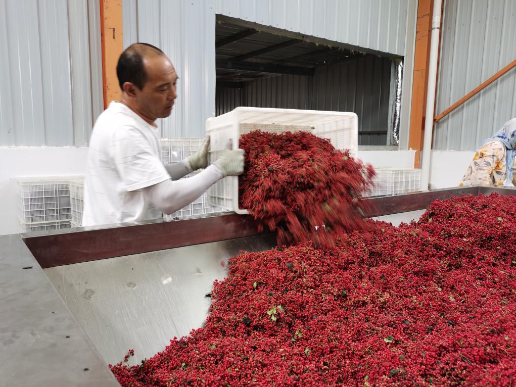 一位村民正在新義村的花椒加工廠里加工花椒。(受訪者供圖)