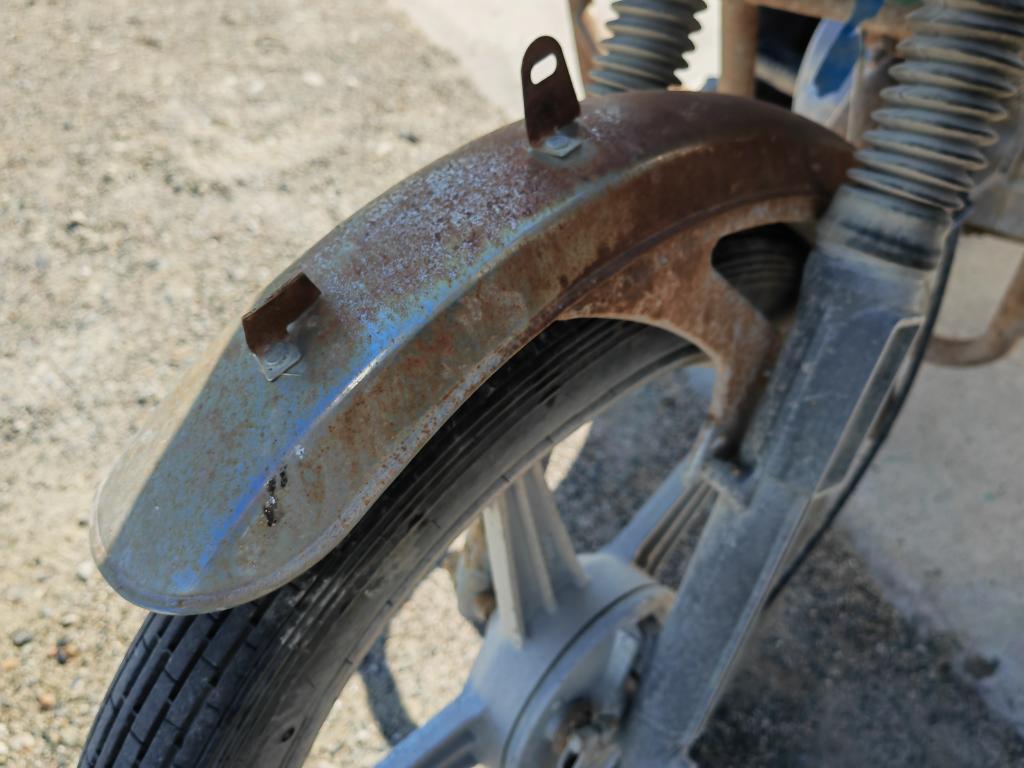帕勒哈提·賽買提摩托車上的銹痕。(9月6日張曉龍攝)