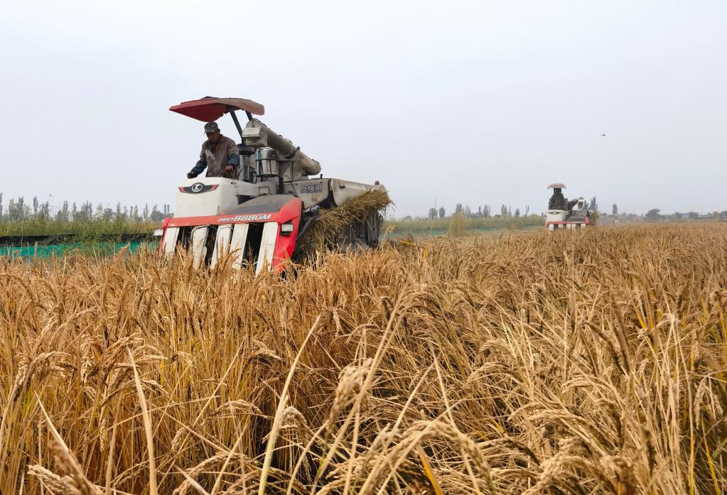 程風偉所在的“稻客”車隊在收割水稻。新華社記者靳赫 攝