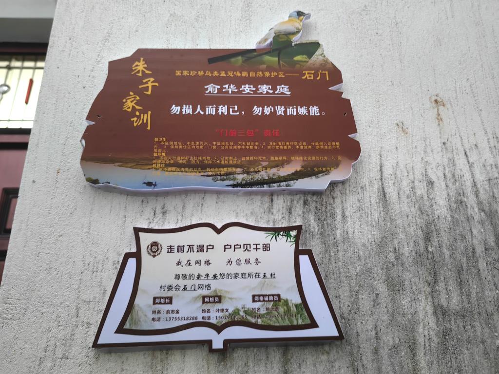 石門村村民俞華安家門口的家訓牌。 新華社記者郭強 攝