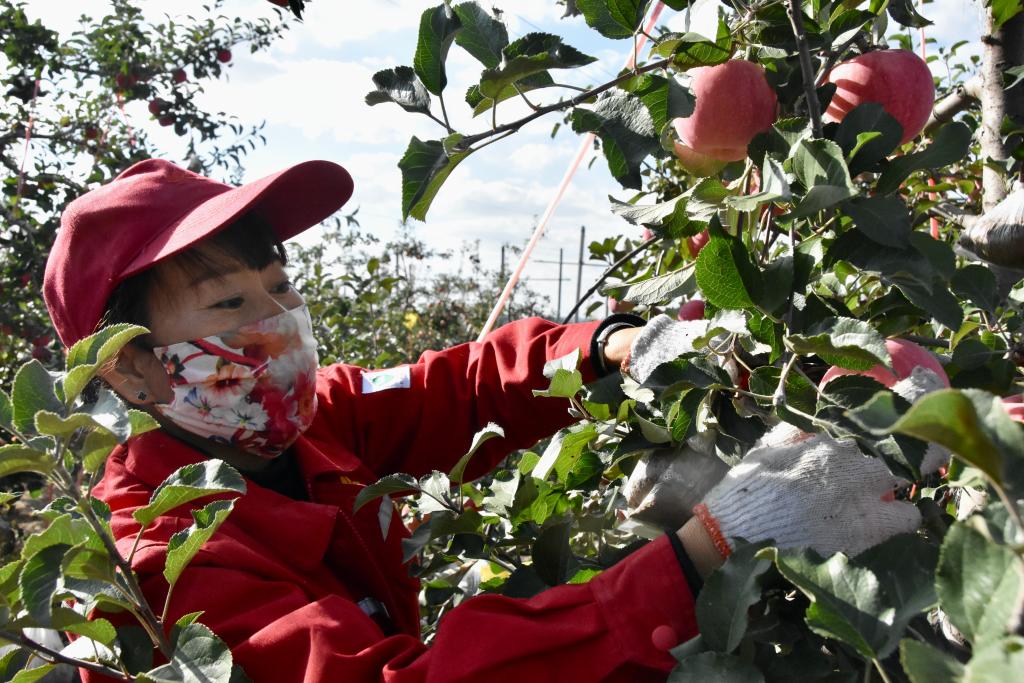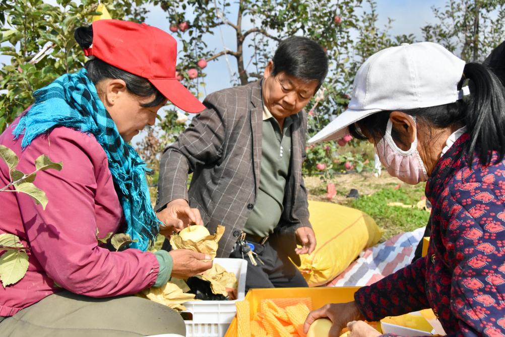 “我每天早晨七點半開始采摘、分揀、裝箱,一直干到下午六點,經手的蘋果得兩三千斤?!惫r尚生艷說著便掰開一個蘋果,鮮明的糖心上還流著汁水。