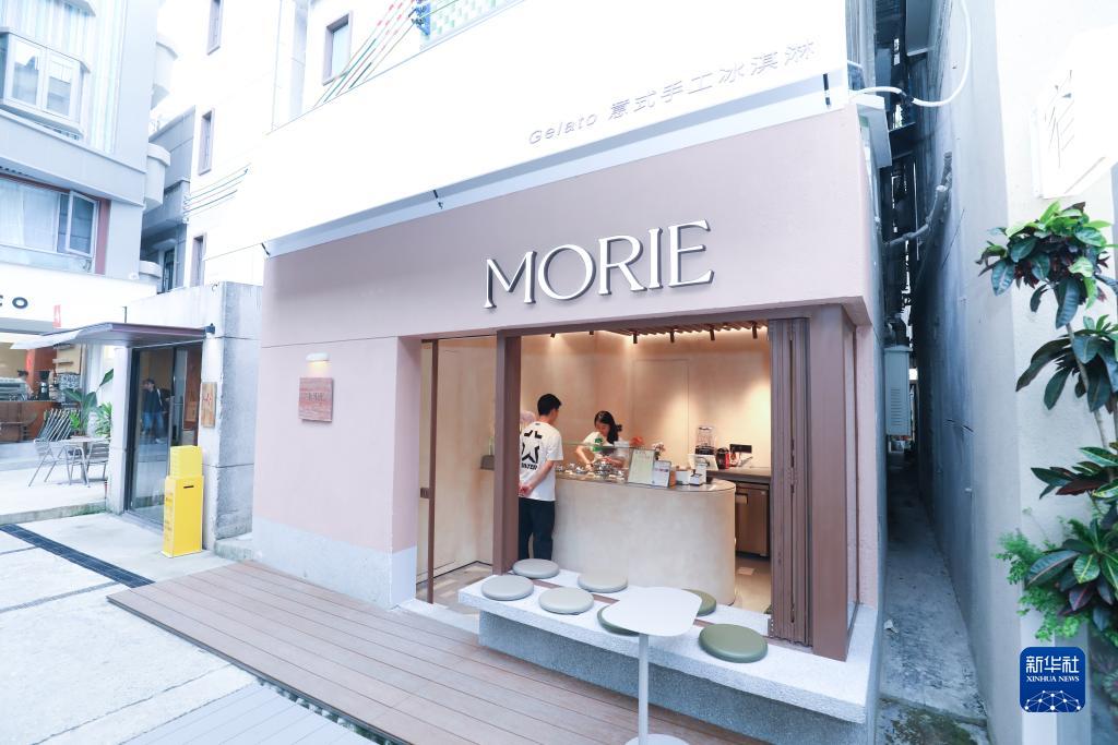6月26日,在南頭古城,香港青年謝珊琳(右)在她主理的手工冰淇淋專門店內工作。新華社記者 李曉玲 攝