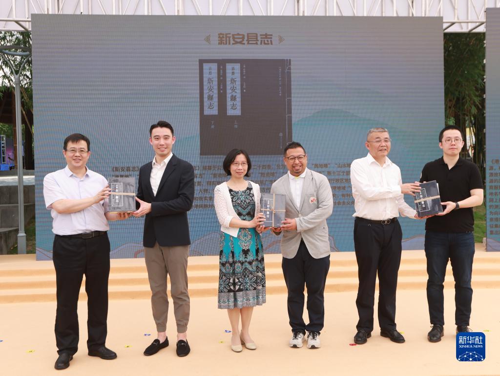 5月20日,主辦方在“深港各界紀念新安縣建縣450周年系列活動”啟動儀式上,向香港各界青年代表贈送《嘉慶新安縣志》等書籍。新華社發(深圳海外聯誼會供圖)