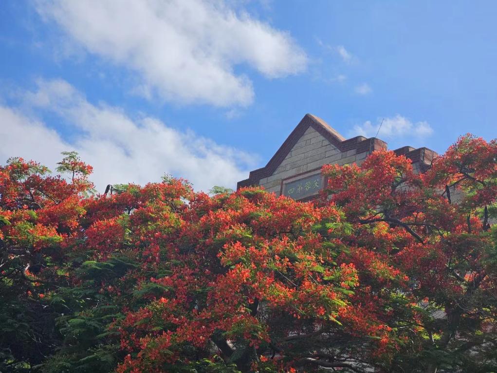 5月29日,廈門大學內的鳳凰木花開正盛。葉恒 攝