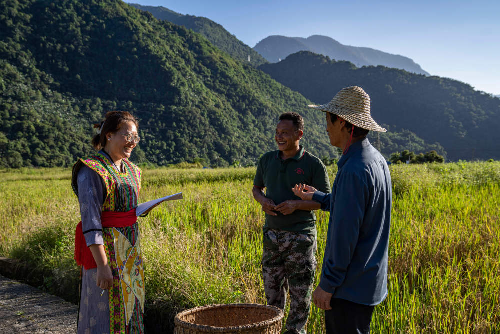 在墨脫縣德興鄉,鄉黨委副書記白瑪曲珍(左)在田間調研(2023年10月13日攝)。新華社記者 孫非 攝