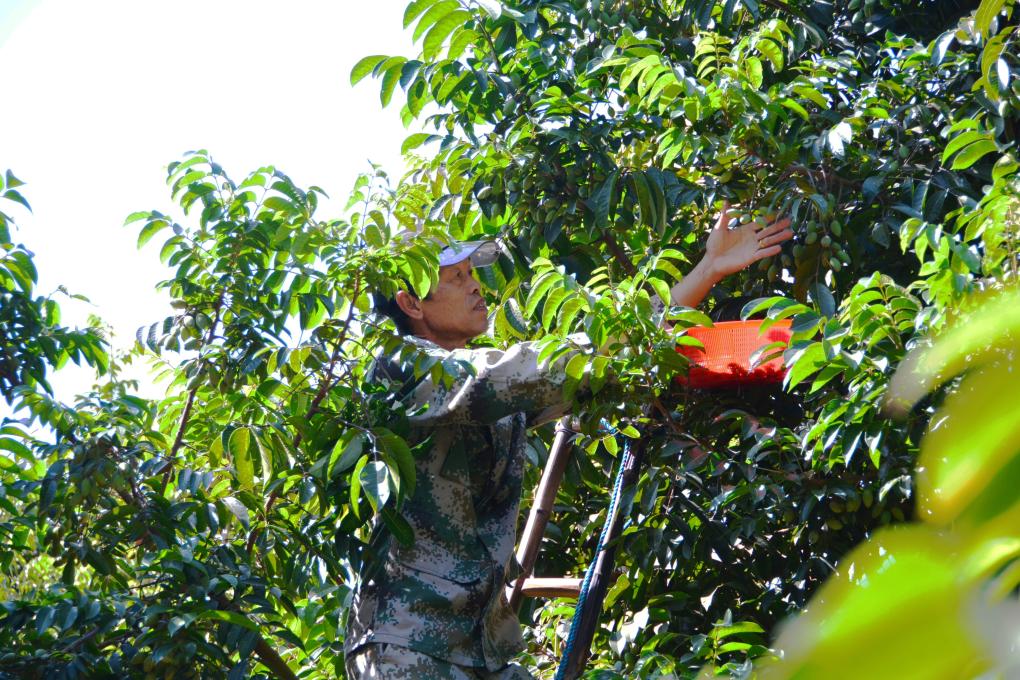 張孔江正在采摘橄欖。新華社記者李昊澤 攝