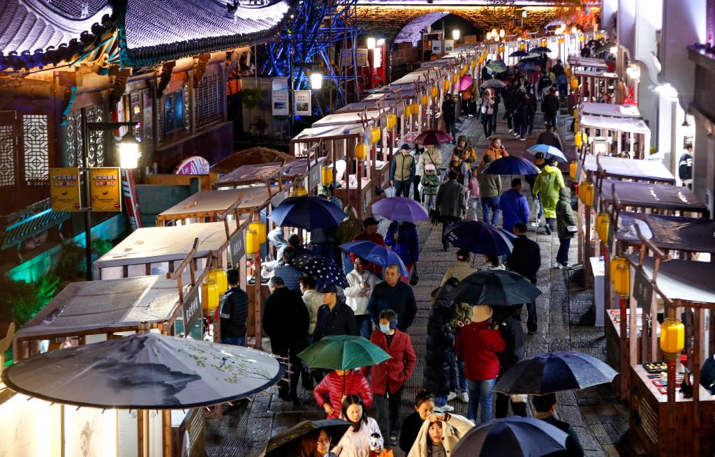 夜幕下,安徽省黃山市新安江邊的屯溪河街人頭攢動。流光溢彩的徽州漆器、巧奪天工的廬州蛋雕、清香四溢的綠茶制作……一項項多姿多彩的傳統非遺技藝,點燃了徽州古街的煙火氣。