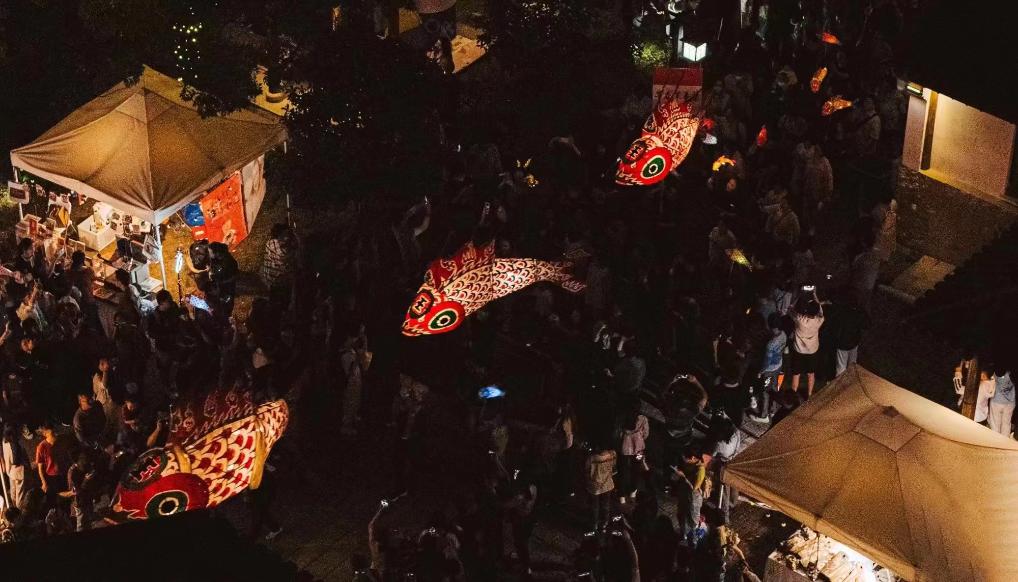 中秋國慶長假期間,汪滿田魚燈參加了蘇州石湖景區的手作藝術節。(張小君 攝)