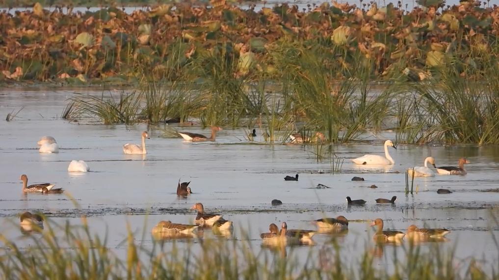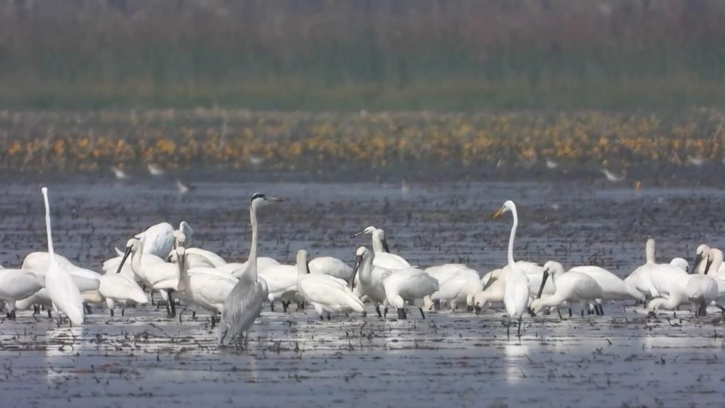 中國最大的淡水湖鄱陽湖是白鶴、東方白鸛、小天鵝等珍稀候鳥鐘愛的越冬“天堂”。每年有數十萬只候鳥飛抵這里,最高峰時可達到約80萬只。