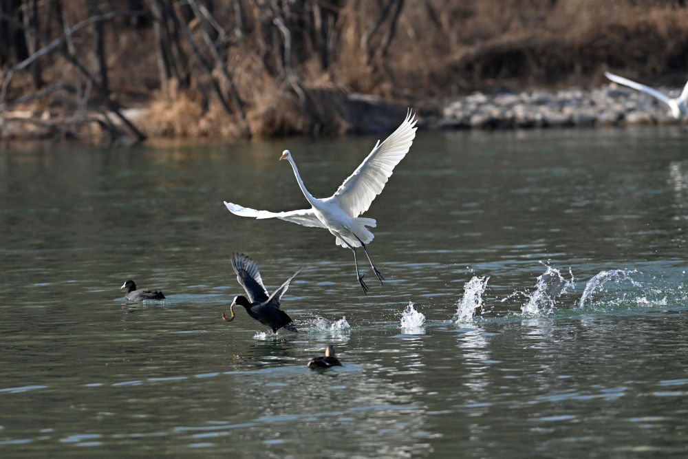 在山西省太原市,鳥兒在汾河嬉戲(2023年1月4日攝)。新華社記者 楊晨光 攝