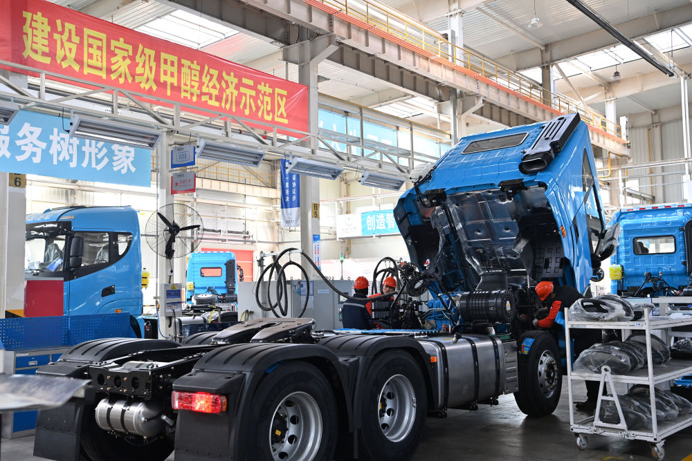這是在位于山西省晉中市榆次區的山西新能源汽車工業有限公司(吉利晉中基地)拍攝的甲醇重卡(2022年12月9日攝)。新華社記者 楊晨光 攝