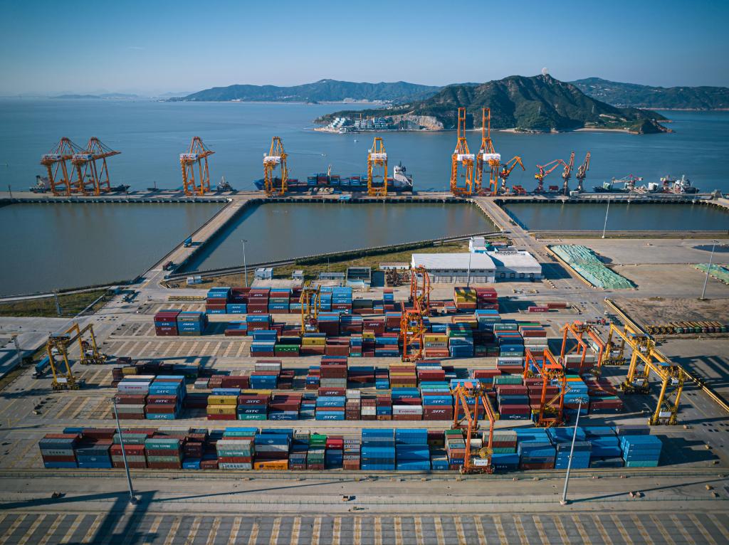 初冬時節,溫州狀元岙港區集裝箱碼頭。
