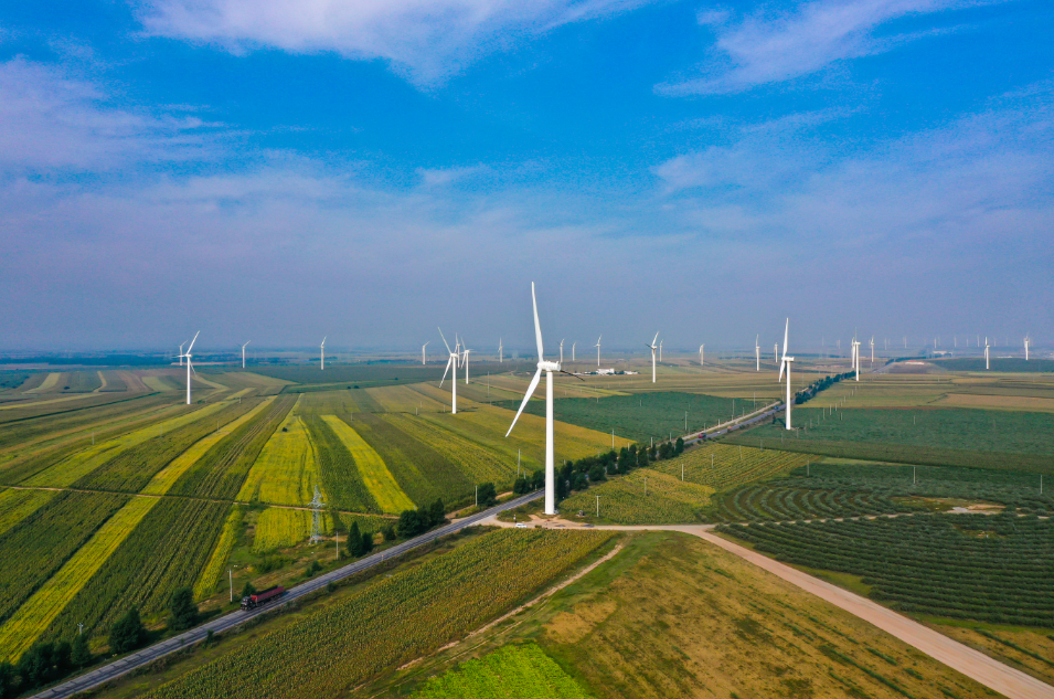 迎風而動的大風車是內蒙古草原上隨處可見的風光。