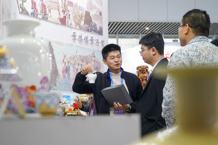 在版博會展覽現場,參展商在展示景德鎮瓷器(新華社記者 唐文豪 攝)